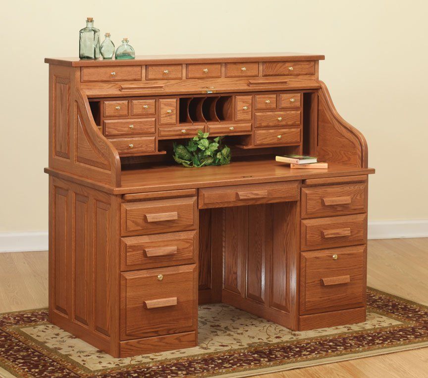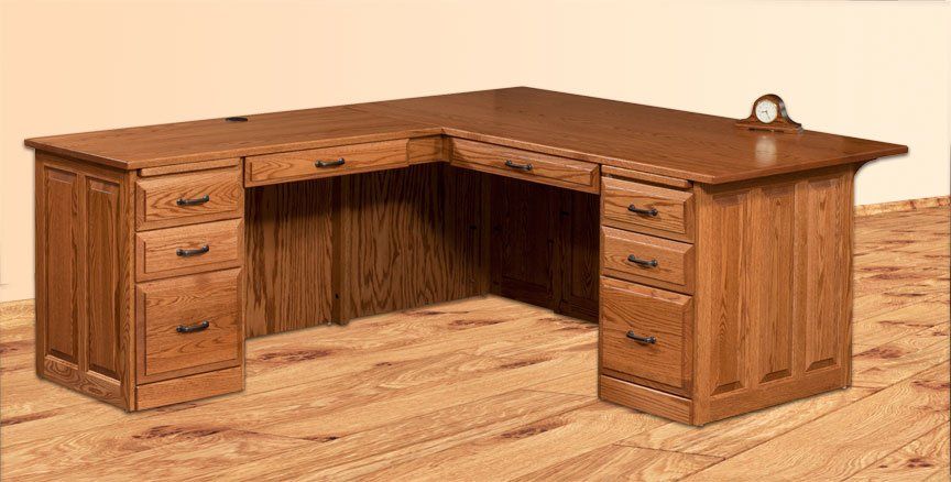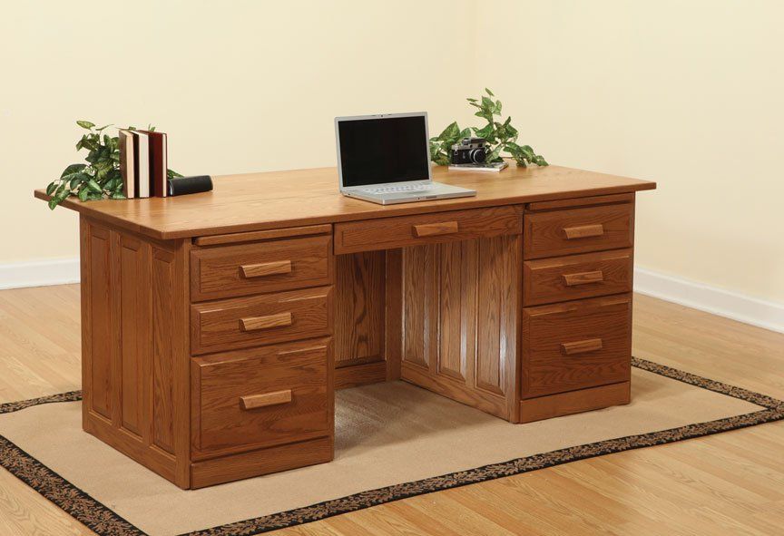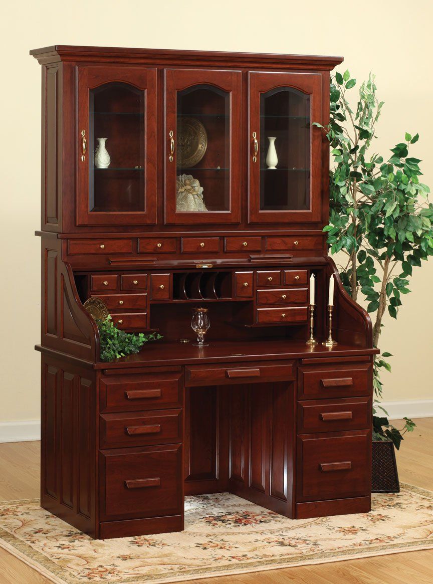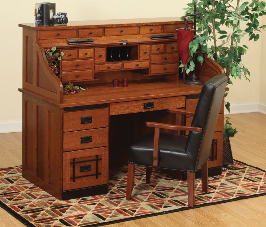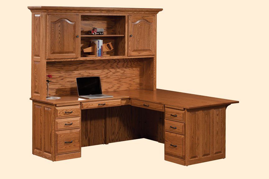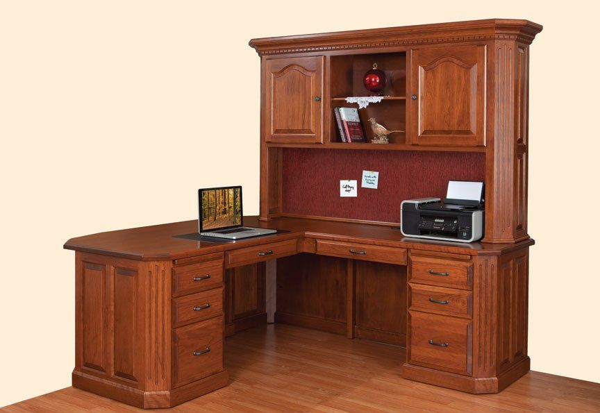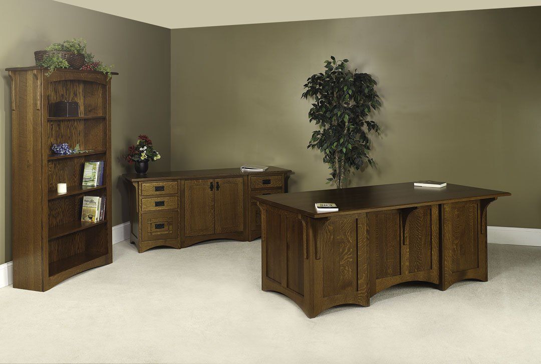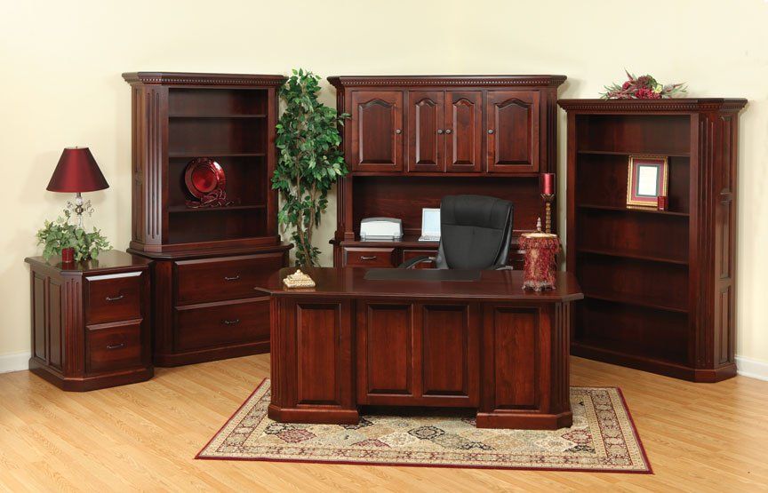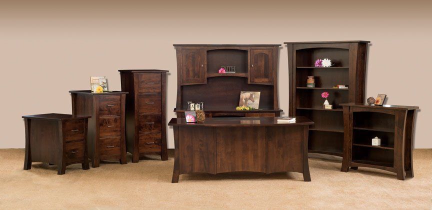 Here is just a small sampling of the Amish made office furniture we can provide. We have several Amish builders who specialize in building office furniture and each builder has a catalog of beautiful collections. Once you pick a style you then pick the wood species, the stain color, and the hardware for the drawer pulls. There are dozens of stain choices from natural to very dark. We sometimes have a limited number office furniture pieces in our warehouse available for immediate delivery. FREE delivery on most items out to 30 miles from our store.