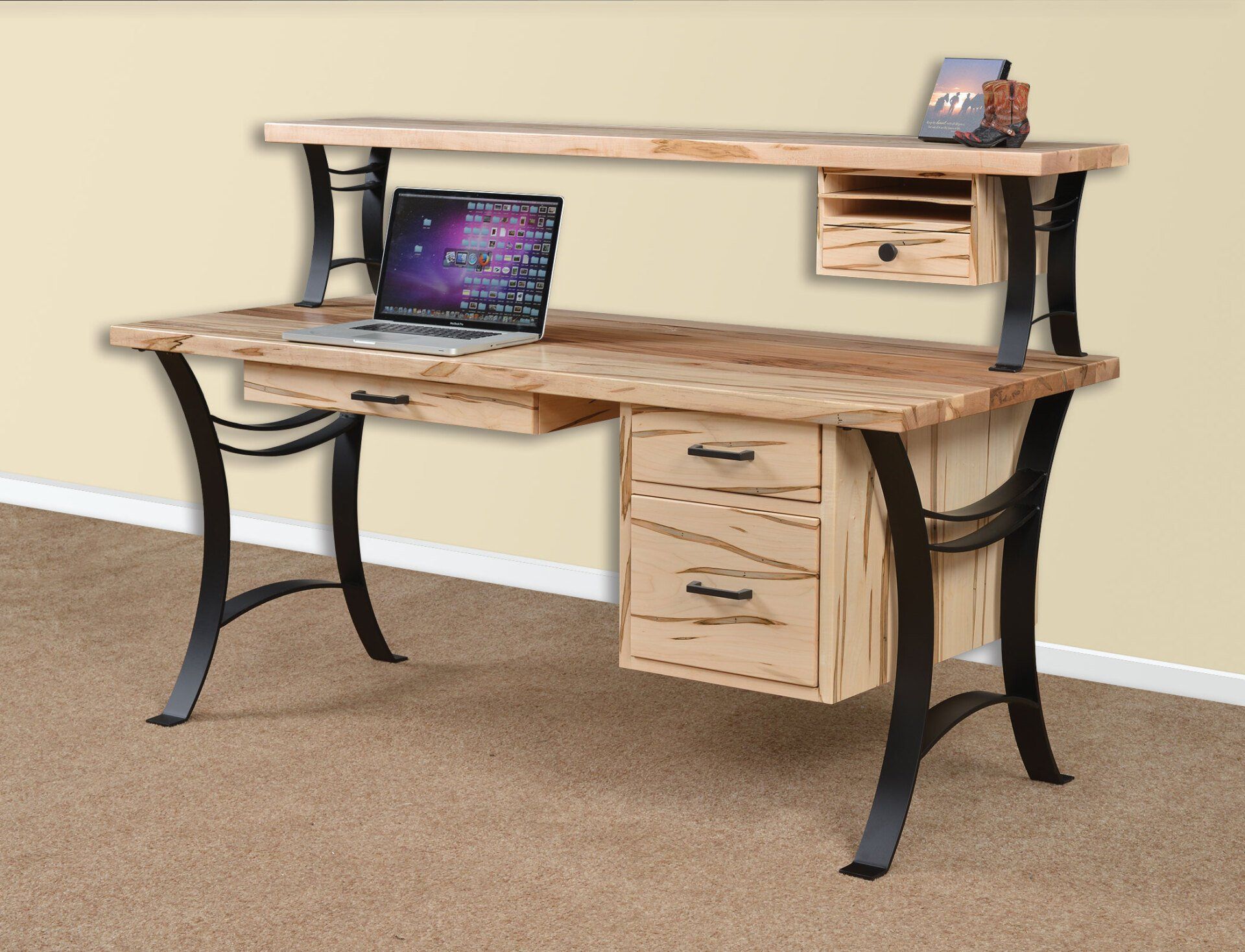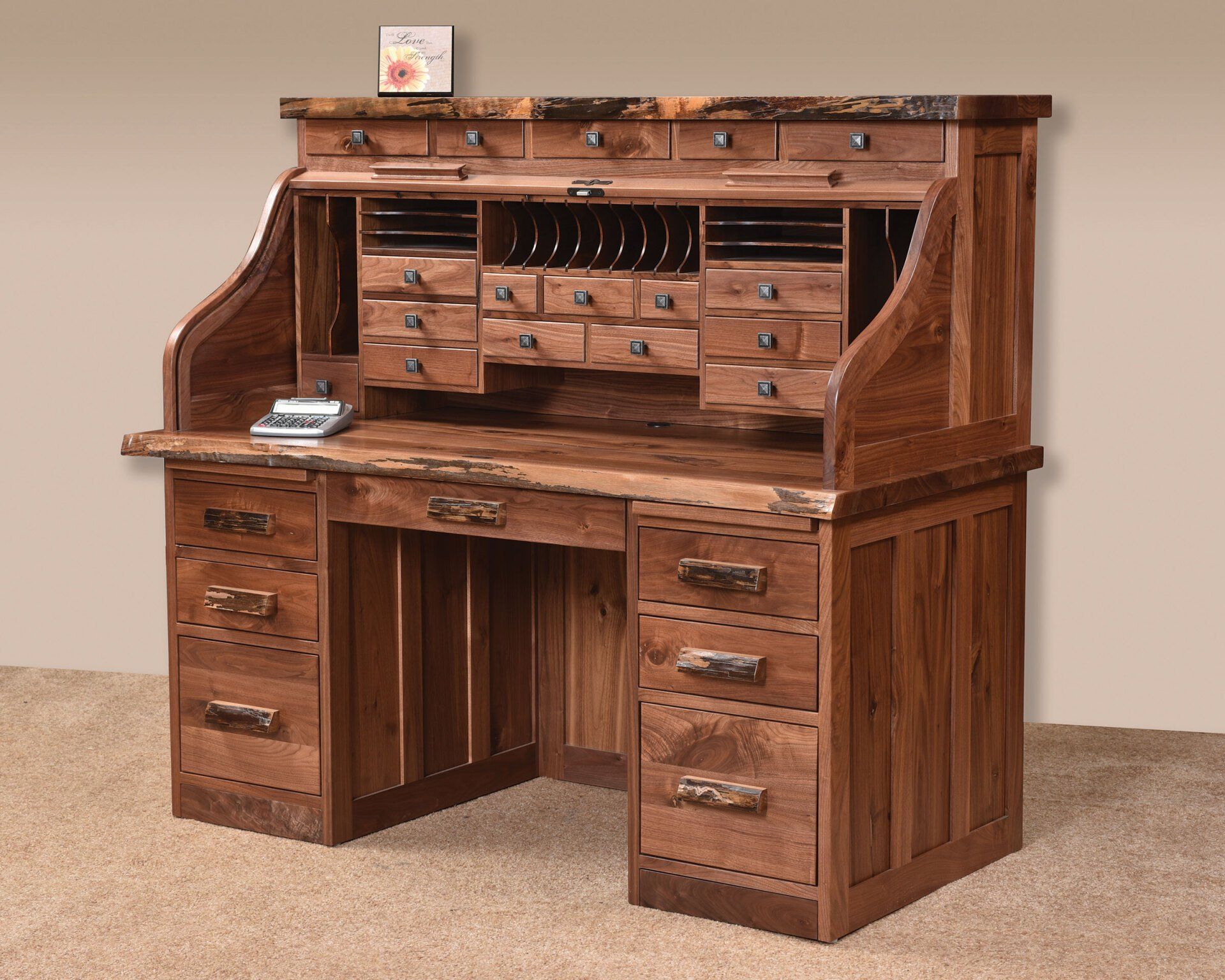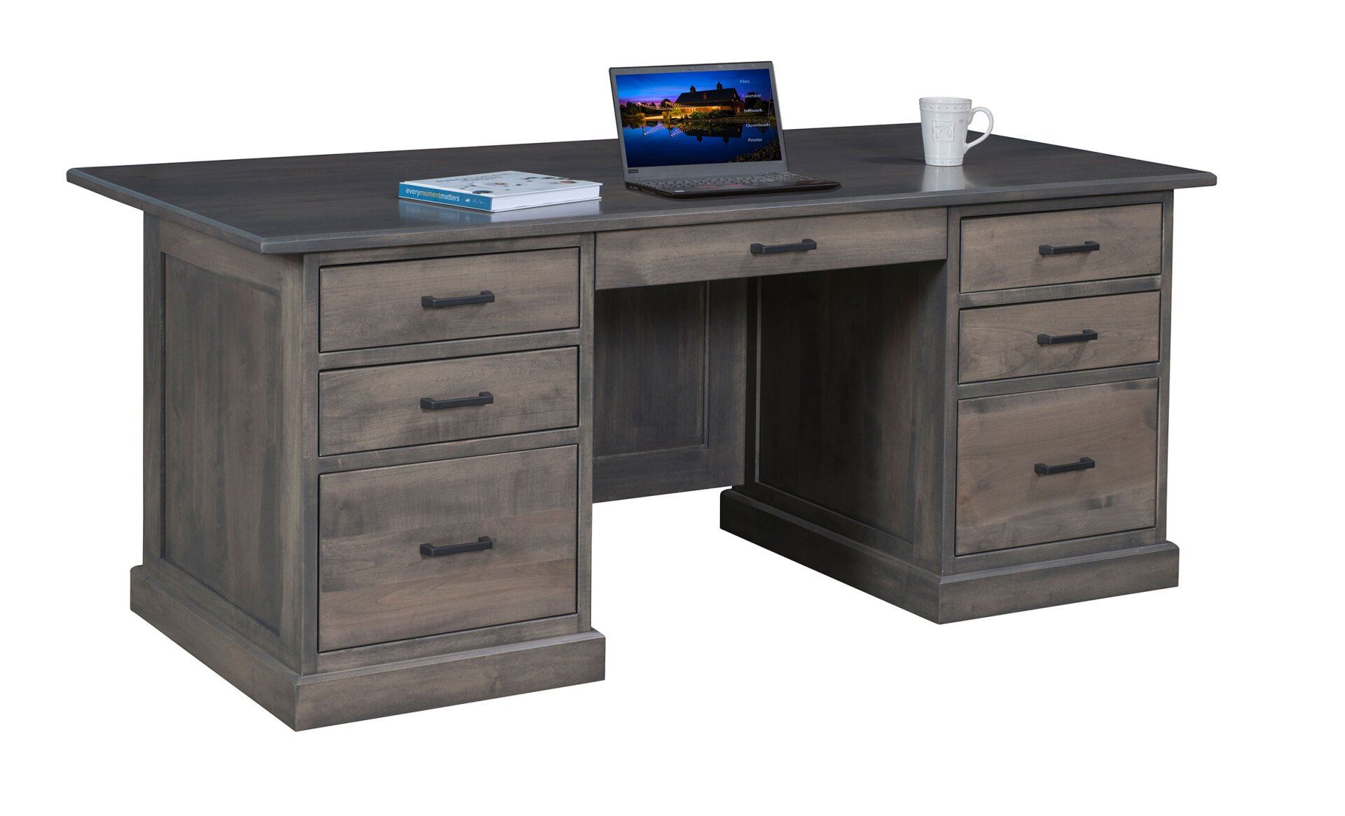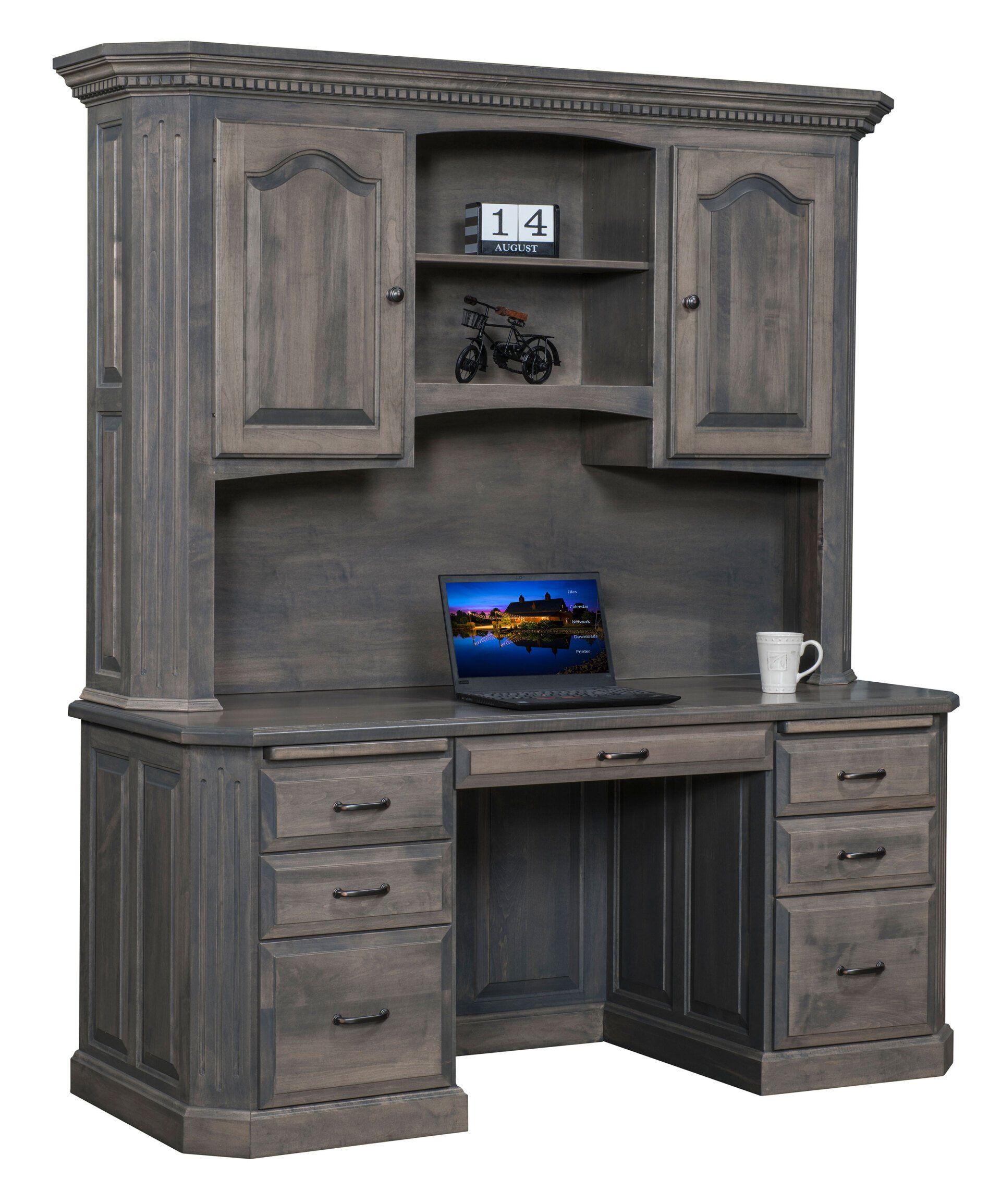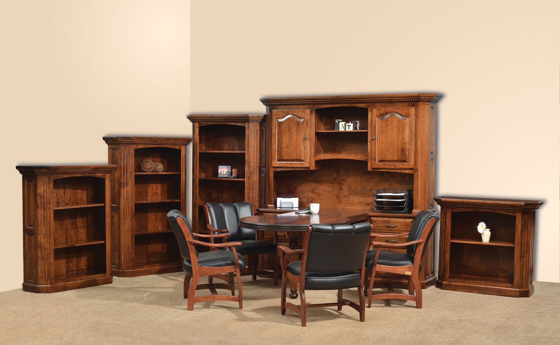 Here is just a small sampling of the Amish made office furniture we can provide. We have several Amish builders who specialize in building office furniture and each builder has a catalog of beautiful collections. Once you pick a style you then pick the wood species, the stain color, and the hardware for the drawer pulls. There are dozens of stain choices from natural to very dark. We sometimes have a limited number office furniture pieces in our warehouse available for immediate delivery. FREE delivery on most items out to 30 miles from our store.