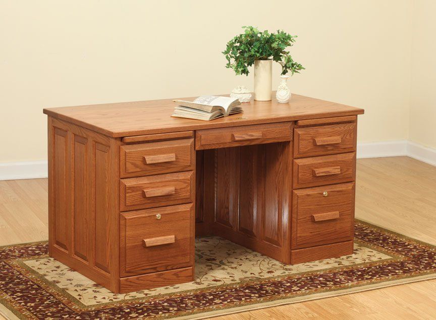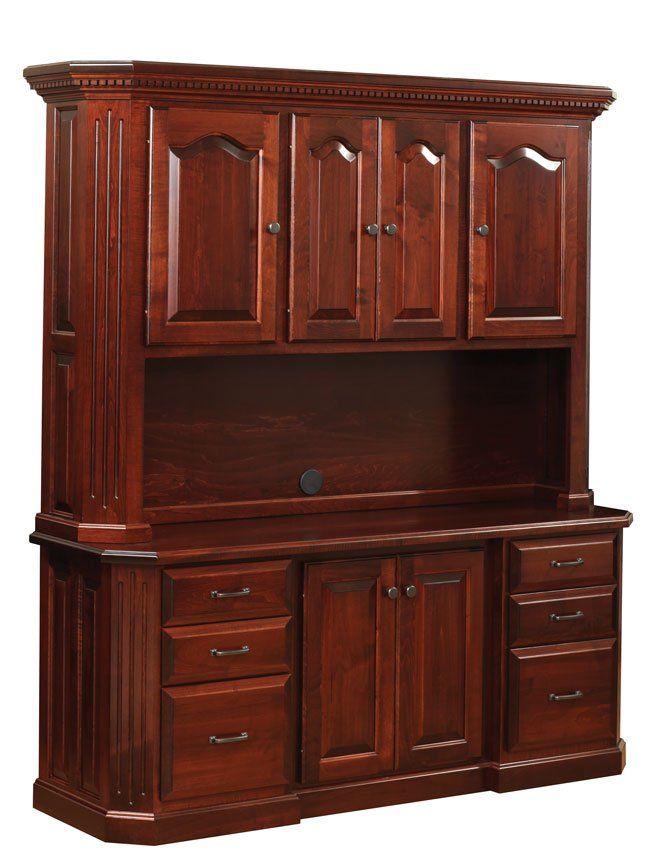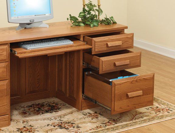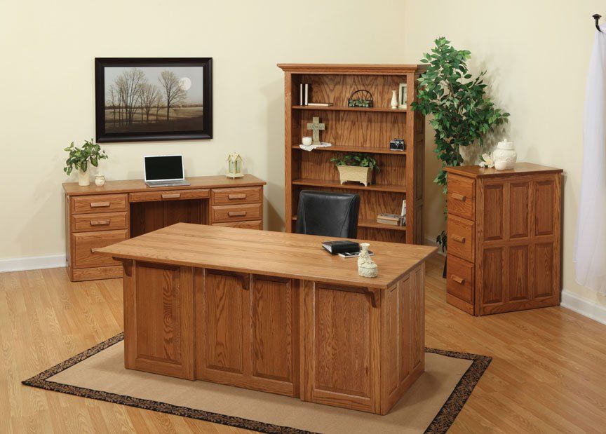 Here is just a small sampling of the Amish made office furniture we can provide. We have several Amish builders who specialize in building office furniture and each builder has a catalog of beautiful collections. Once you pick a style you then pick the wood species, the stain color, and the hardware for the drawer pulls. There are dozens of stain choices from natural to very dark. We sometimes have a limited number office furniture pieces in our warehouse available for immediate delivery. FREE delivery on most items out to 30 miles from our store.